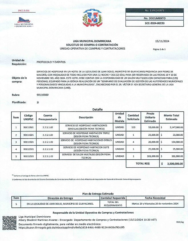 La Liga Municipal Dominicana desembolsará la considerable suma de RD$2,500,000 para hospedar a 125 personas en un hotel de lujo en Juan Dolio, bajo el pretexto de participar en un “Seminario de Evaluación de Gestión de las Autoridades Municipales y Personalidades Vinculadas a la Municipalidad.”